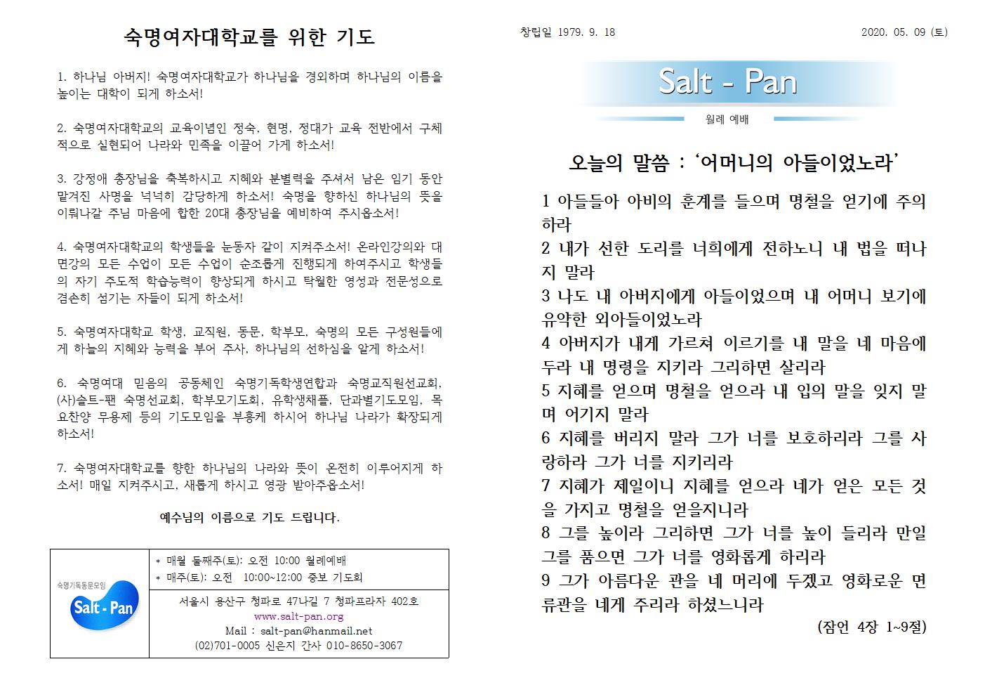 숙명인 수요채플