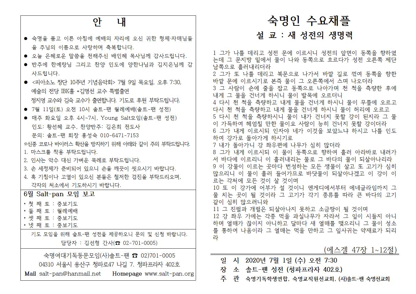 7월 숙명인 수요채플