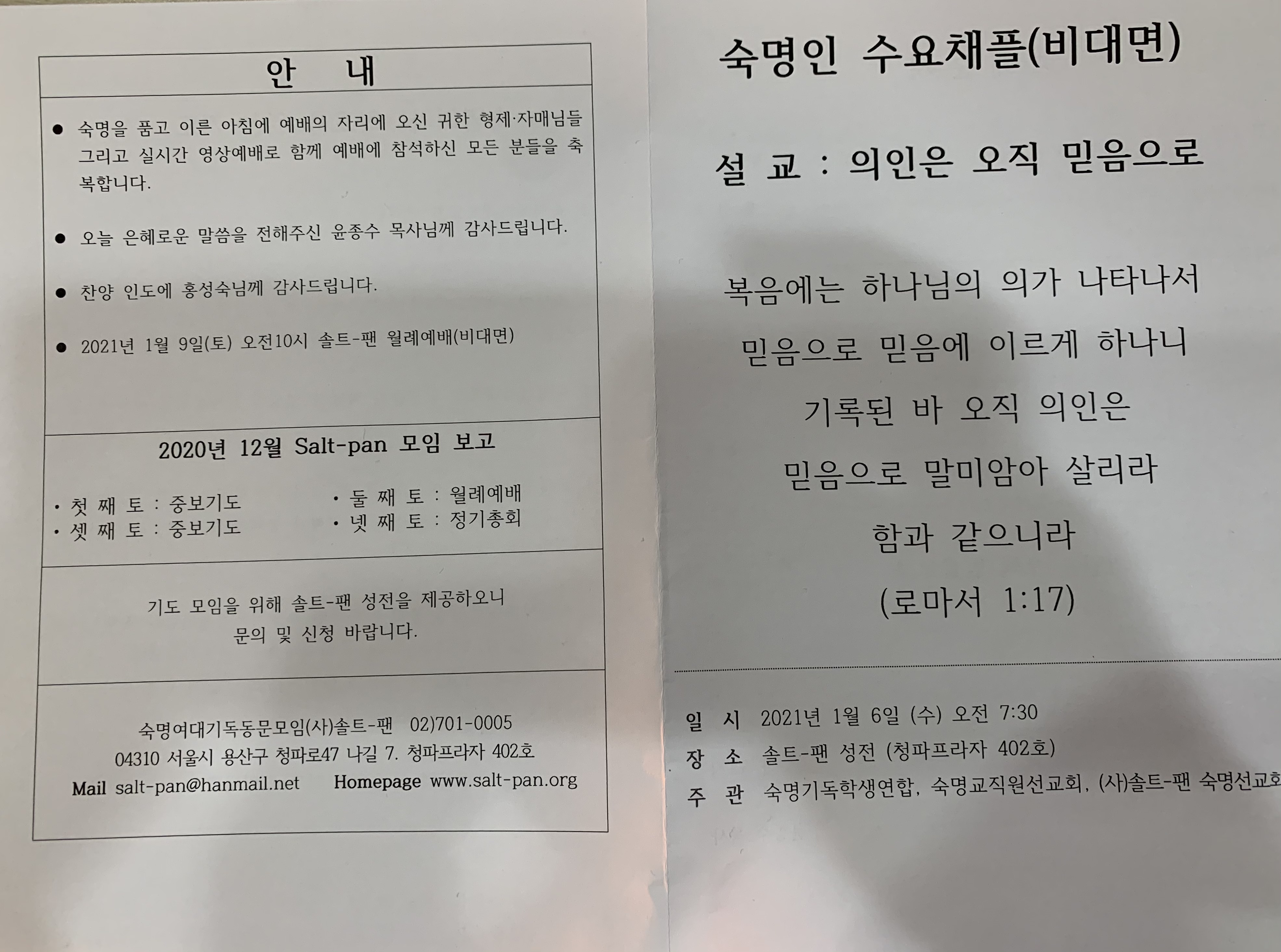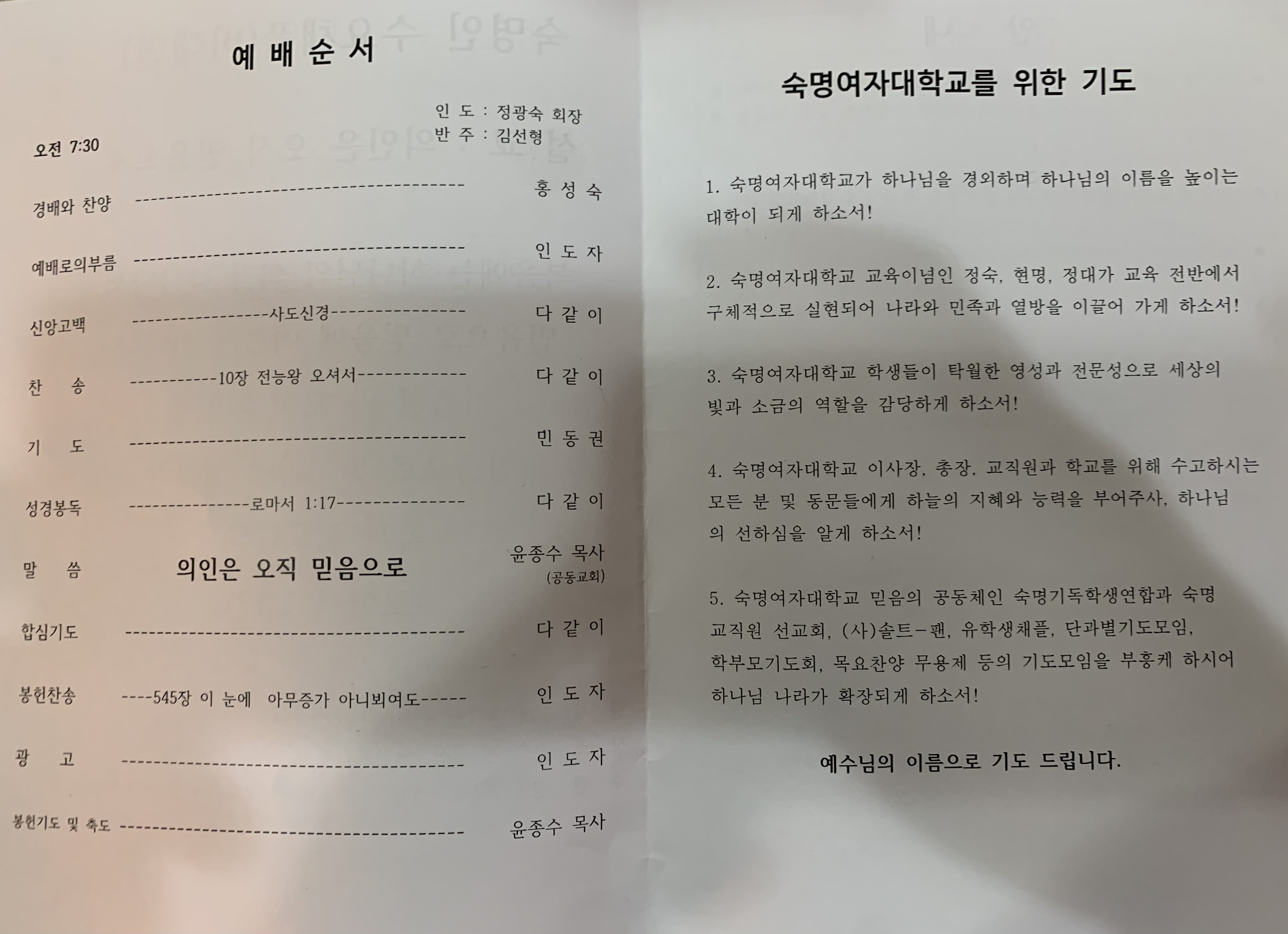 1월 수요채플 말씀(윤종수목사님