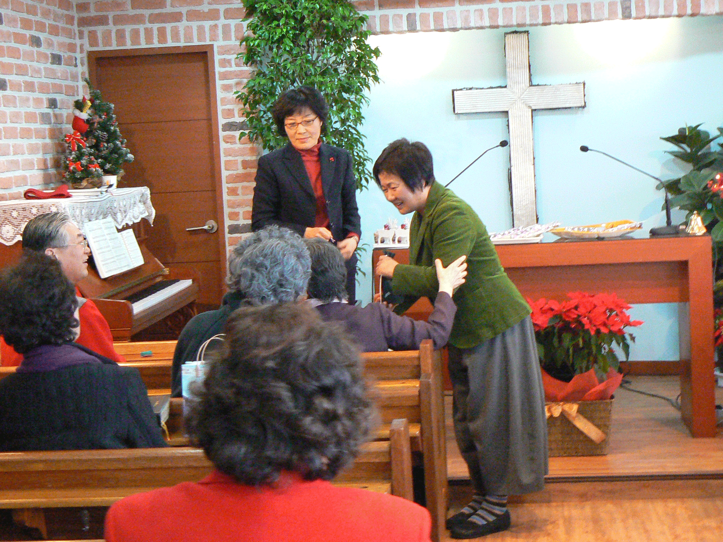 12월 토요 모임 중 성탄절 기념 선물 교환 순서의 모습