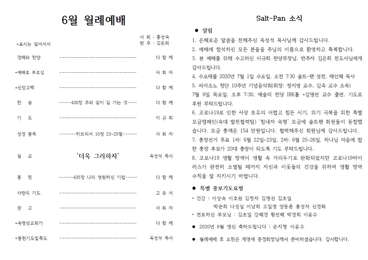 2020년 6월 월례예배 월보입니다.