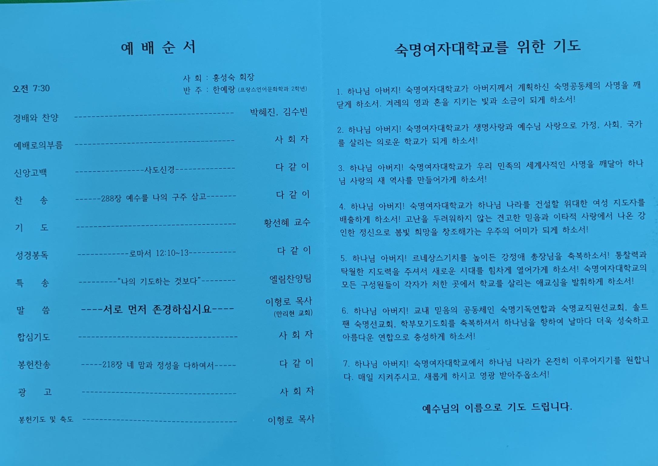 숙명인 수요채플