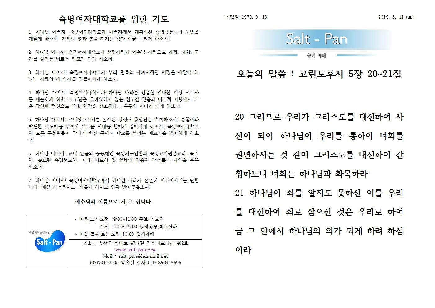 숙명인 수요채플