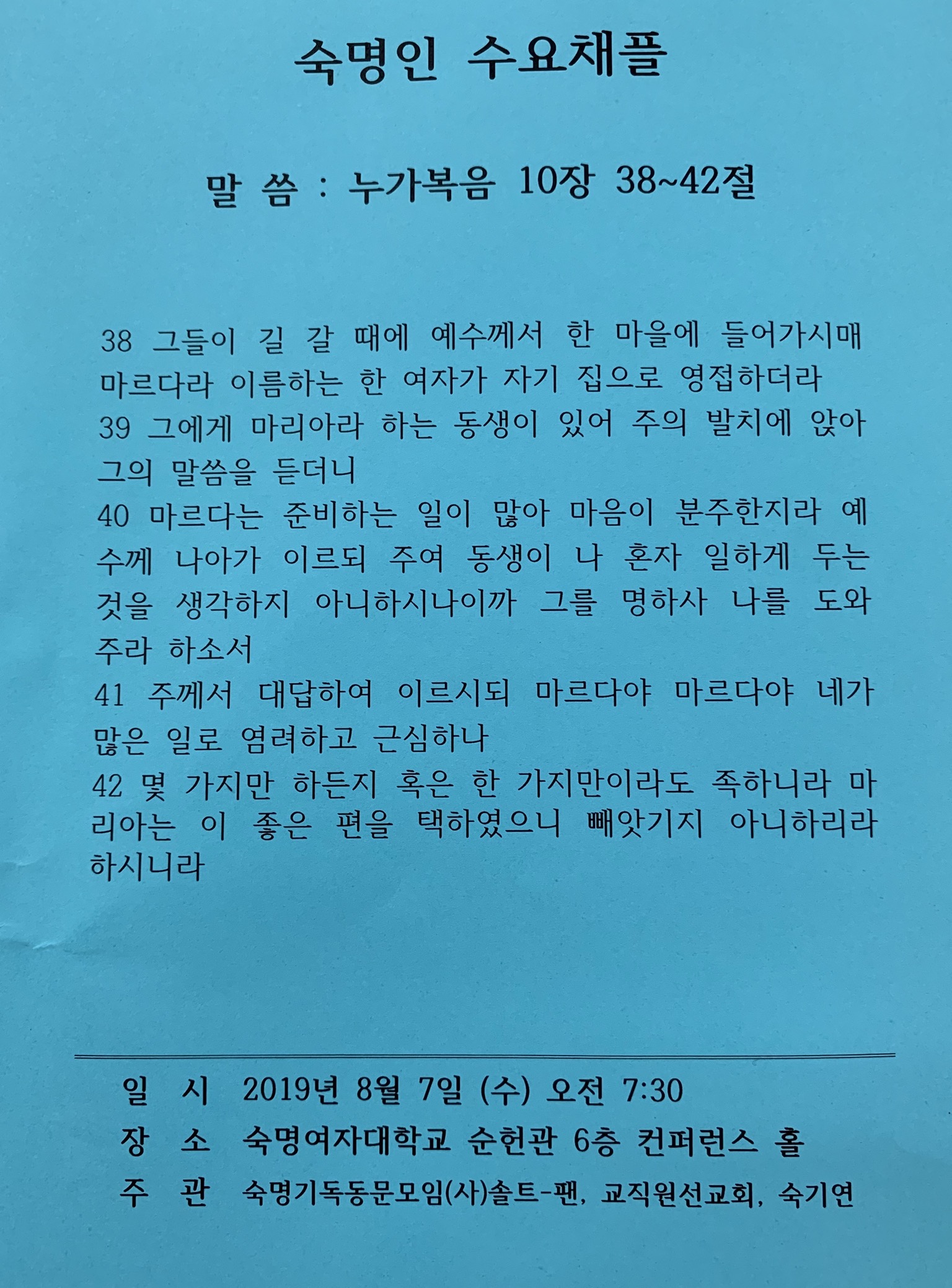숙명인 수요채플